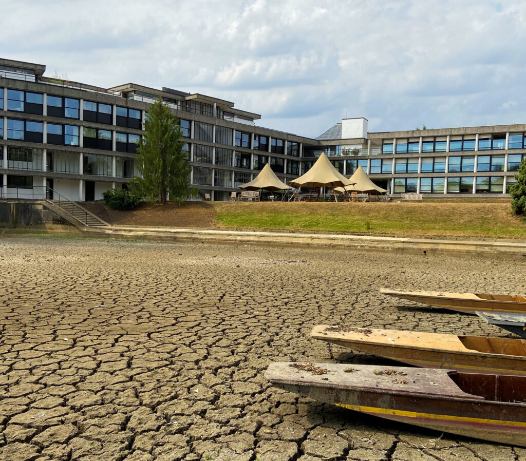In the long hot summer of 2022, the harbour dried out almost completely, as pictured. There is now much less risk of a complete drought in the harbour, providing the sluice gates down stream are correctly managed at the University Parks in Mesopotamia, at Magdalen College’s King’s Mill, and at Holywell Mill.