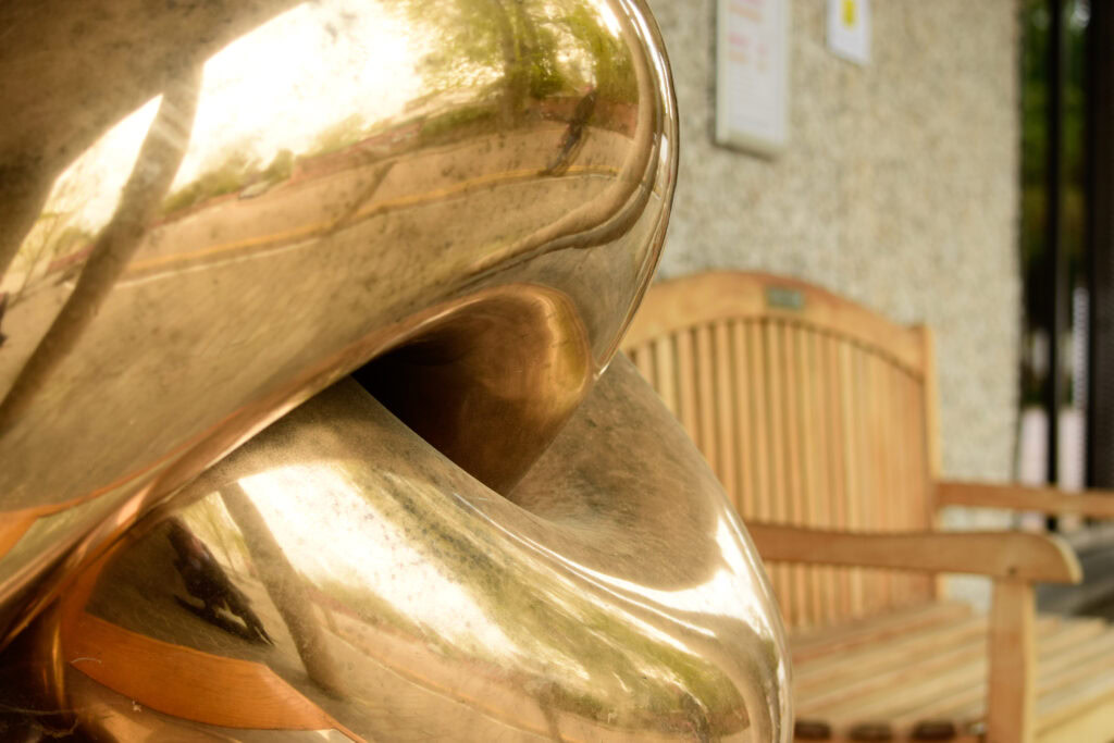It consists of two large bronze rings joined together as in a chain, suggesting both links between the two countries, and the chains which bound the first convicts. Symbolically, the chain extends from Portsmouth to Sydney over the route travelled by the First Fleet. The surfaces of the sculptures are also rich in symbolism; the Portsmouth one has a dull painted surface to denote the ‘old country’ and the links of the chain in Sydney, like those at Wolfson, are highly polished brass to represent the ‘new country’.