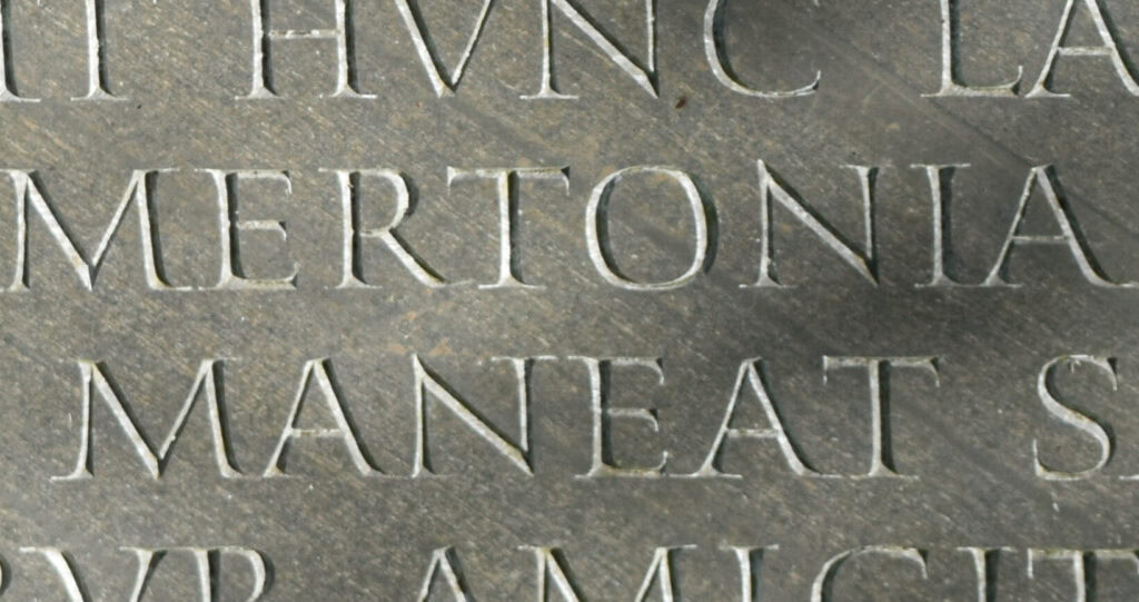 Plus Maneat Saxo Robur Amicitiae.[Merton presented this stone