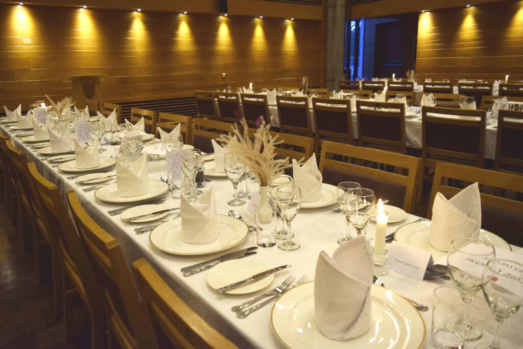 Last week Wolfson’s Governing Body held a Formal Dinner to mark the departure of three of its Fellows, Professors Erica Charters, Jay Lewis, and Christina Redfield. The evening provided the opportunity to acknowledge and thank each of the Fellows for their various contributions to the Wolfson community. Our thanks also to the Catering team whose work in laying and dressing Hall was hugely appreciated by all.