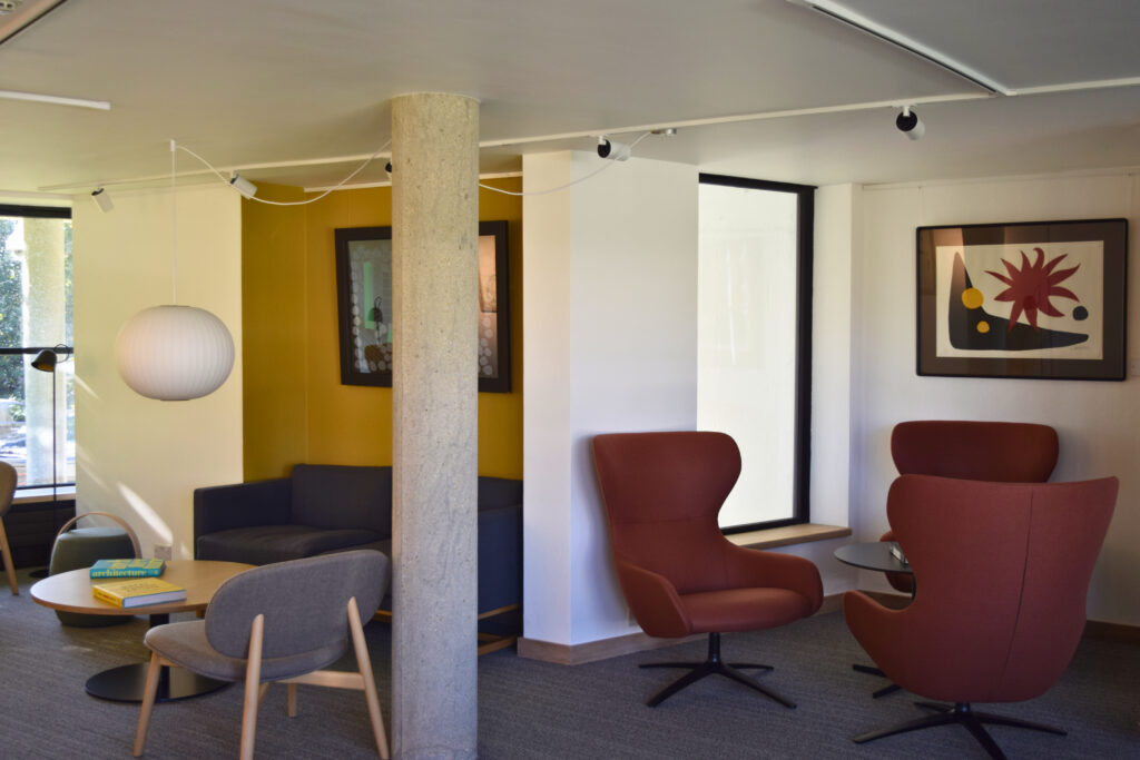The revived space showcases some of the best of Wolfson’s contemporary art collection while new seating areas provide the perfect place to relax with a cup of tea, catch up with friends or work in a comfortable environment.