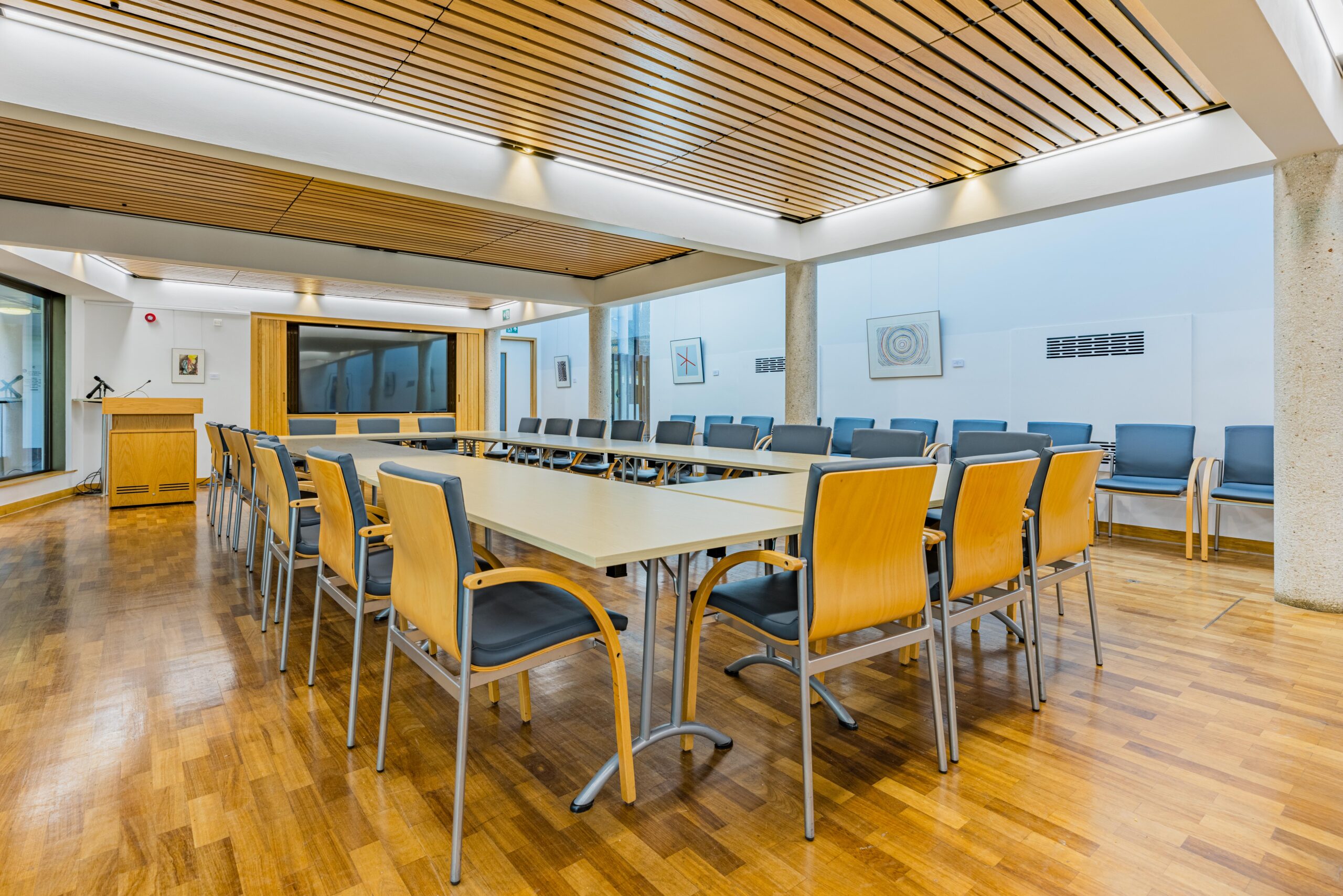 | AV Equipment | Digital projection with HDMI/USB-C and wireless presentation (VIA Go2) options, Windows PC with internet, DVD (Blu-ray) player, various wired & wireless microphone options, audio and video streaming/recording facilities |